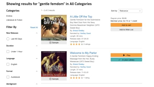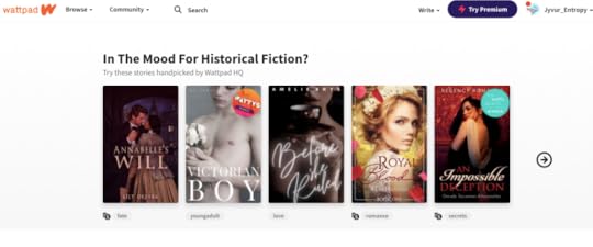 I have shy guy romance and time travel romance suggested to me. I have femdom smut recommended to me. I have historical fiction recommended to me.