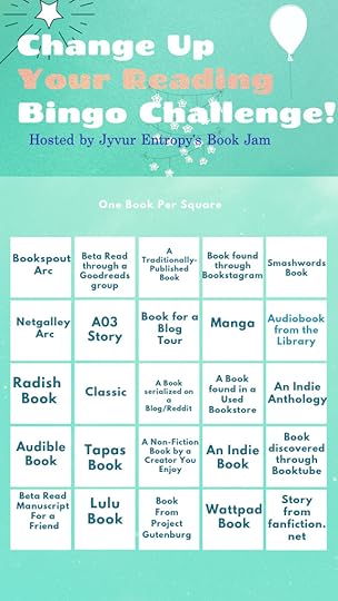 Traditionally-published bookIndie bookwattpad bookRadish bookBooksprout arcNetgalley arcBeta read a manuscript for a friendFind a manuscript to beta read through a goodreads groupA book from smashwordsA book from luluAn audible bookAn audiobook from the library (most libraries use Overdrive or Libby and you can download books from home)A story on A03A book for a blog tour (I like going through Silver Dagger best)A book from Project GutenburgA story on fanfiction.netA book serialized on a blog or on redditTapas BookBook you discovered through BooktubeA book you find in a used bookstoreA MangaA Book you found through bookstagramAn indie anthologyA ClassicA Non-fiction Book by a Creator You Enjoy (blogger, youtuber, business owner, etc)There we go! Now that is a nice variety of books that allows me to support all kinds of different indie creators across a number of platforms (and of course, I’ve gotta keep up with all the traditionally-published and classics that might come up in my travels across the bookosphere).