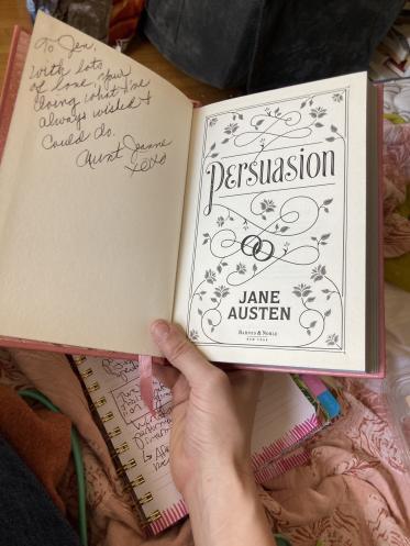 In addition to sugar skulls, flowers and butterflies are also symbols of this holiday. Tell us a book with flowers or butterflies on the coverI’ll have to show off this beautiful copy of Persuasion that my Aunt bought for me a couple of years ago.