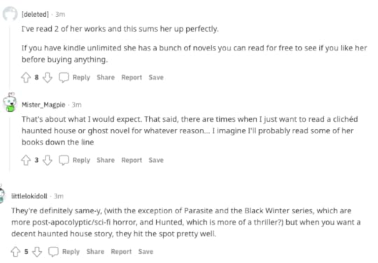 Darcy Coates has a LOT of haunted house books. The general consensus in the book community seems to be that she writes fluffy, formulaic, but perfectly serviceable haunted house books for when you’re in the mood for something spooky but light.