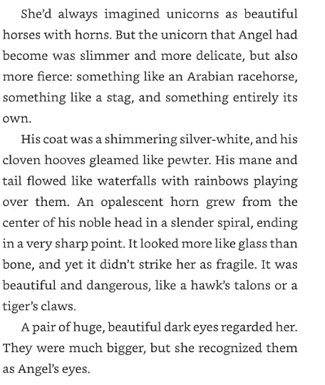 There are also winged kittens, a teleporting chicken that they can’t keep in its coop, a hawk that can break the sound barrier, a merhorse, gem toads, and the best magical animal, the dragonette Rock. Rock was so incredibly adorable. Not only was she a great plot device, because her appearing created the meet-cute between Everly and Angel, but she was also just so cute and sweet. Like a scaly winged little cat. I loved her as a character.
