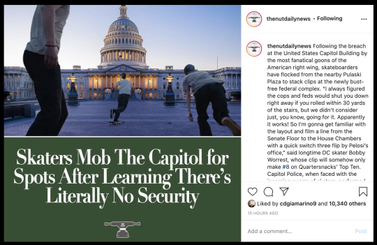 While typically protests have been a prime opportunity for skateboarders to get out and access parts of the city normally off bounds. It now seems that the priority to skate is fused with the desire to protest. The satirical ‘thenutdailynews’ aptly makes jest of this point.