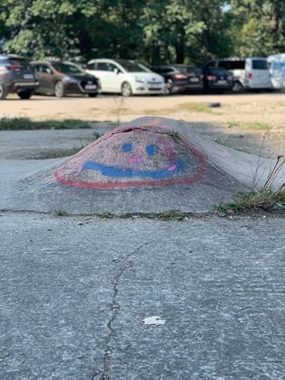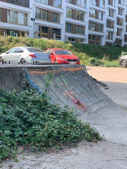 Stumbled on a DIY skate spot in Prague today. It seems to be mostly on its last legs but still in use. Coming across such a spot by surprise is a real joy. It makes me feel like a modern antiquarian. Couldn’t help but think of Richard Gilligan’s book as like many of the locations he depicts, this was empty of life. I was on my bike and had no board to enjoy the terrain. This made it feel even more like some old ritual space that I could not quite bring to life. I was however able to dig out a photo of the spot when it was in its prime. Brightly coloured with a mermaid pattern.