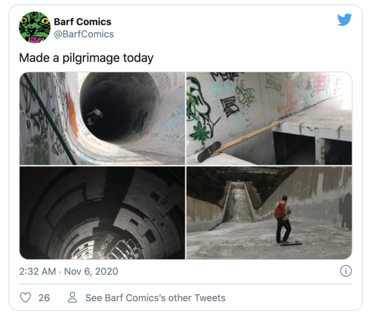 James Callahan from Barf Comics Tweeted out some photos from his trip to the Mount Baldy Fullpipe. He aptly titled the post ‘made a pilgrimage today’.