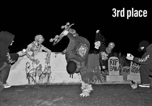 Barrier Kult launched their own Halloween competition, inviting fans, disciples and Horde members to create their own BA. KU. inspired photos. Search the #BAKUHALLOWSCONTEST for a selection of the entries. The winning entry has all the paraphernalia of BA. KU., a skated Jersey Barrier, Pentagram, candles, with the added gore of decapitation. BA. KU. thrive on satanic imagery and their own very niche ritual language in which boards are referred to as daggers. They are a perfect marriage between the gnarly skate imagery of death and destruction and the Halloween festivities. This was nicely portrayed this October 31st with the release of Franky Villani’s new video part. Famous for his love of corny horror movies, Villani’s Halloween release included a comically gruesome claymation intro and a lot of seriously good skateboarding.