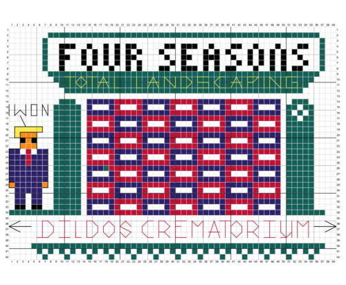 Over the last couple of days the business has be inundated with press enquiries and public interest. They have set up a Twitter and Instagram account, and launch ‘Make America Rake Again’ T-Shirts, Caps, and Sticker merchandise. They have released a virtual zoom background, and the location has quickly. appeared on VR Chat where Furries turned up to party. Memes are flooding in, with a CrossStitch pattern on Reddit, and a screen shot from the computer game Fall Out: New Vegas looking much alike the small family owned business. Others are releasing merchandise too, some supporting voting rights.