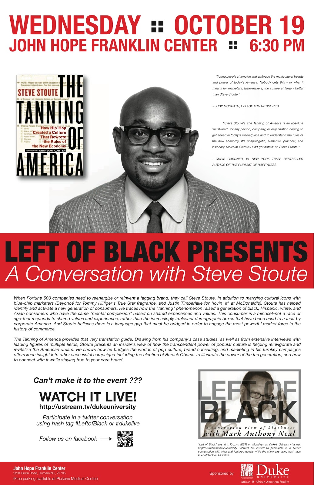 In a new book, The Tanning of America (Gotham/2011), Stoute reflects on the power of hip-hop culture to transform not just what we buy and sell but how we see one another. Host Frank Stasio talks with Stoute in advance of his appearance on Duke University Professor Mark Anthony Neal's webcast "Left of Black" tonight at the John Hope Franklin Center in Durham.Listen Now!