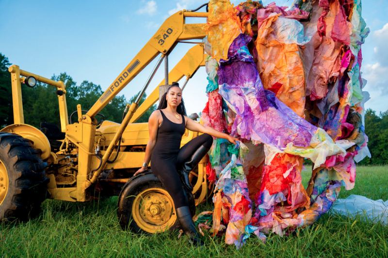 'Durham artist Maya Freelon’s large tissue paper installations have hung in the halls of the Smithsonian Arts and Industries Building and the North Carolina Museum of Art. She has received commissions from Google and Cadillac and was recently named one of five young artists to watch during Miami Art Week 2019. Her techniques transform tissue paper from schoolhouse craft to fine art and create community in collaborative quilt-making workshops.' -- The State of Things on WUNC