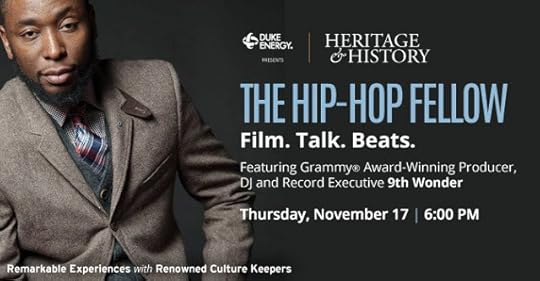 North Carolina native, 9th Wonder (Patrick Douthit) is the subject of the 2014 documentary The Hip-Hop Fellow, which will be screened as part of this three-part Heritage & History program. The film traces his 2012-15 tenure as a Fellow at Du Bois Institute at Harvard University where he taught and explored hip-hop’s role in academia. Currently, 9th Wonder is a Lecturer in African + African American Studies at Duke University.