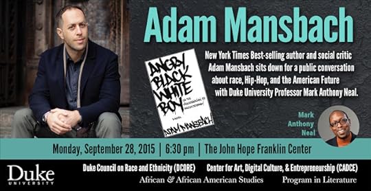 Race, Hip-Hop & The American Future: A Conversation w/ Adam Mansbach @ Duke University on Mon September 28th