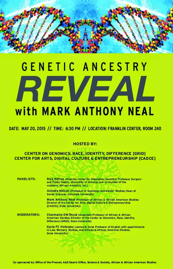 Genetic Ancestry Reveal with Mark Anthony Neal @ Duke--May 20, 2015