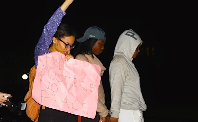 And now we stop here again, waiting for days now and counting, for the word – will the Grand Jury indict police officer Darren Wilson for the murder of Michael Brown in Ferguson, Missouri? We are holding our collective breath, staying tuned to social media so we can exhale with the announcement. At the same time, the protesters in Missouri, indeed the community of people who want justice for Michael Brown, are being handily policed through a relentless national PSA campaign before the Grand Jury announcement.
