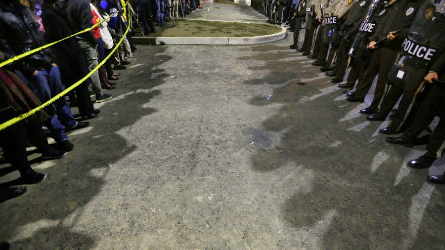 The words of Michael Brown, Sr., ‘Hurting Others Is Not The Answer' and President Obama’s seconds long call for calm have become useful sound bytes, helping to cement the spectre of a violence scarier than the murderous violence that brought us here. It has overtaken the real story about social injustice and something very refreshing in response – sustained protest even when public attention and the media turned elsewhere for pressing news until the Grand Jury watch began. SWAT teams, the FBI, and ATF are hovering over Ferguson and for what? Peace? No, for a war but not one for social justice.