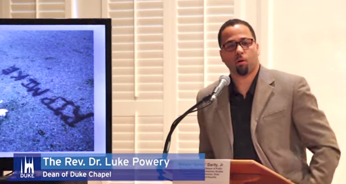 Taking inspiration from the spiritual "Calvary," the Rev. Dr. Luke Powery offers "A Memorial for Mike" in tribute to teenager Michael Brown who was killed last month in Ferguson, Mo. Powery is the dean of Duke Chapel. His remarks were part of town hall discussion Sept. 1, 2014, at Duke University, hosted by the Department of African and African American Studies.