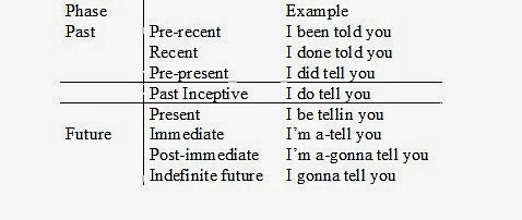 “Baby, you ain’t said nothin’ of the kind,” the man said. Ali tried to watch them from the corner of her eye. The man, with his gentle insistence against the woman’s stony front, was clearly coming on to her. Ali wondered if they were friends. Or maybe they’d just met on this bus, ten minutes ago. Had the woman said been told or done told? That would give a clue. A linguistics table floated between Ali’s eyes, somewhere over Wallo’s head, a lexicon she’d studied years ago.