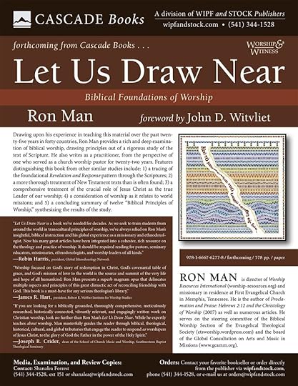 I have a publisher. It’s in process. It’s going slowly. Hopefully, it will be out this fall, I think. But anyway, it’s called, Let Us Draw Near: Biblical Foundations of Worship. That phrase, of course, comes from Hebrews 10:19-22, where it says,