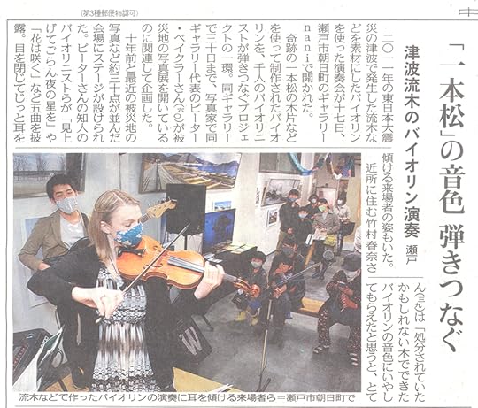 My wife Abi and teammate, Christina, traveled to Seto to give concerts all day during this festival. They performed in Peter’s gallery using the “tsunami violin.” The exhibit “Scars: The Path Toward Healing,” which we talked about in a previous podcast, remembers hope and healing through the arts in the 10 years since the earthquake and tsunami struck on March 11, 2011.