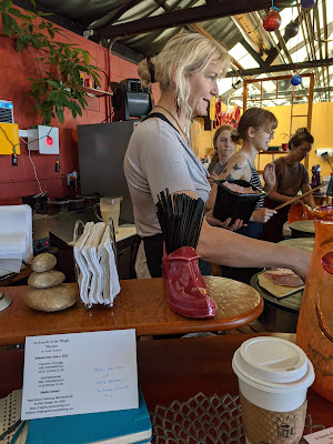 But if you'd like your signed copy of In Search of the Magic Theater personalized, and want to meet me and chat, Sabine of Crepe Bohème at Dayton's Second Street Market is hosting me on Saturday, June 25th, from 9:00 to 11:00 a.m. So come and get your crepe and I'll be seated at the counter signing books!