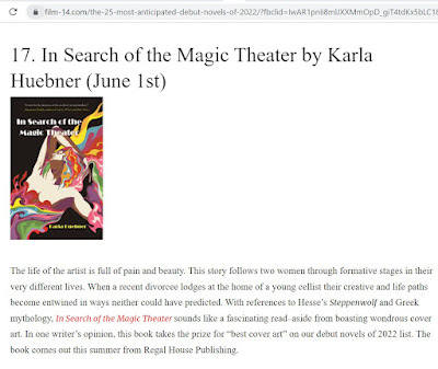 And so, I'm very thankful to the good people at Film-14.com, who noticed In Search of the Magic Theater (possibly on one of the Goodreads 2022 Debut lists) and decided that it was a book they are particularly looking forward to reading. They've chosen books for a wide range of reading tastes, and included authors of quite a few different ethnicities and backgrounds, so it's an honor to find myself and some other authors of my acquaintance on their list.
