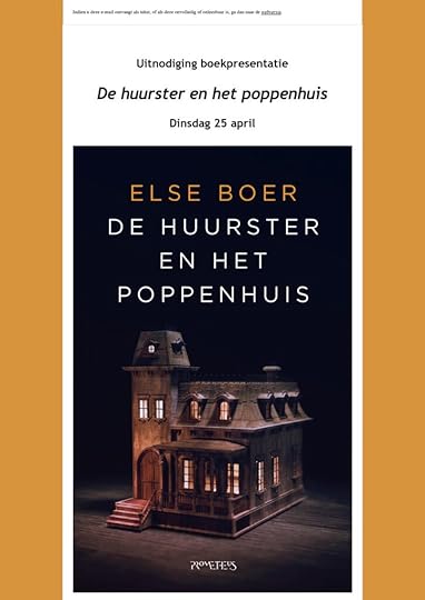 Op 25 april komt mijn nieuwe roman De huurster en het poppenhuis uit! Dat moet natuurlijk gevierd worden, en dat gebeurt in Boekhandel Broekhuis in Apeldoorn, van 16:00 tot 18:00.