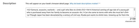 or tags to make it pop. 6 Here���s what that code looks on my KDP setup: