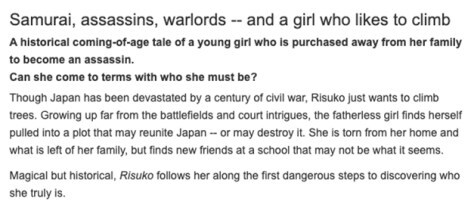 I changed the hook to read, Samurai, assassins, warlords ��� and a girl who likes to climb. That communicates the setting and subject matter for the book, and sets up a question: What the heck is a girl who likes to climb doing with samurai and assassins?