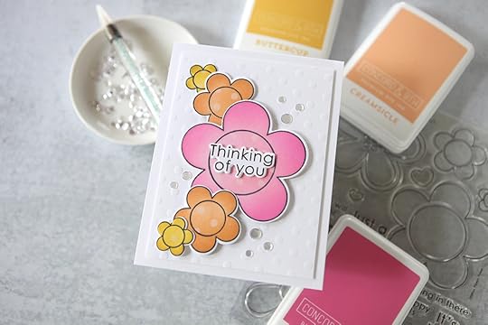 The Flower Power Bundle has all the elements—stamps, dies and a stencil—to help you create cute florals with ease! I love that more and more companies are thinking in terms of bundles, so the whole group of products can really be stretched creatively.