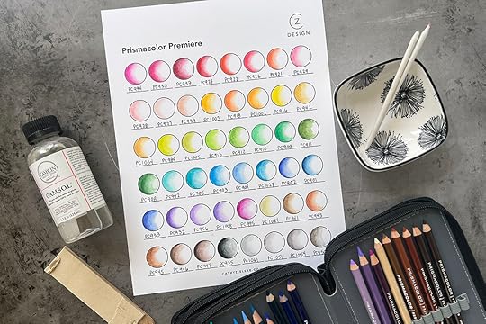 I’ve had my set of 48 Prismacolor Premiere Colored Pencils for a few years now and basically done very little with them. I realized it’s because I have no idea what they really looked like on paper and so I created a very simple swatch chart to blend out the colors using Gamsol, a pencil blending solution. And I want to share the chart with you for free!