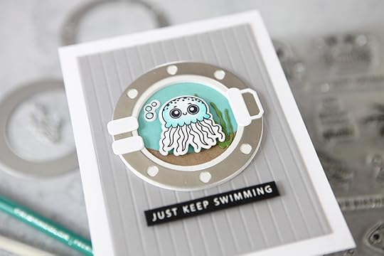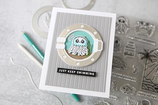 I’m using the Just Keep Swimming Stamps & Dies which are part of her new card kit called Sunny Days. The stamps and dies are available in the kit for now, but will be released as standalone items next month into Gina’s shop.