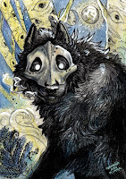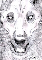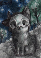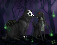 Black Spirit mostly speaks in metaphors and sports a somewhat anti-social disposition, manifesting herself in dreams or visions virtually to only one person in the material plane that she took on as her protégé. She always wear as mask a piece of skull. Her fur is completely black, except for a little red spot on her forehead that isn't visible. "I'm running with the wolves tonight