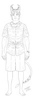 Mutatis demons are able to verbally communicate, and have gentle, androginous natural voices, but they can alter the timbre and quality of their own voice quite easily to adapt to their necessities; the most eccentric and extroverted mutatis sometimes add sound effects to their speech patterns, especially if they get carried away with telling a story.The tail of a mutatis is partly useful to provide them with greater balance, and partly, if necessary, to act like a secondary defense thanks to the arrowhead-like tip, but its main use is certainly communicative as a reinforcer to the rest of their physical language. Mutatis don't indulge in exaggerated facial expressions, but the meaning of their body language changes depending on the movement of this limb: just to make an example, if a mutatis smiles and their tail is still, then they're serene, if it moves jerkily it's a threatening smile, if it curls up they're amused (sometimes even at the expense of their interlocutor), and if they wag it they're absolutely deighted, despite in all of these case probably the expression on their face won't have varied from a courteous smile.