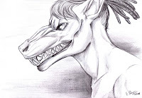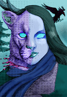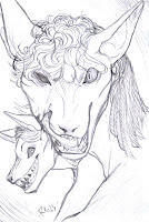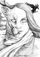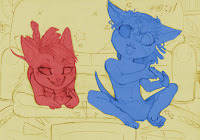3. Sherazad e Furia in uno sketch a penna del 2018. Sherazad (sì, scritta così, volutamente male) è una tigre mannara, che in qualche modo è arrivata in Italia dopo essere stata parte dell'esercito indiano. Furiadoro è, beh, la nostra grezza lupaccia dal pelo dorato e... ovviamente cane e gatto non vanno molto d'accordo.