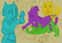 From left to right *inhales*: DocDoughnut's Shanna, Maple by DeadbeatMoth, our ghost kitty Vitali above the head of Pon, which is LovelyWings' character, side to side with the adorable Froppie, which is XFroggiii's, and, dulcis in fundo, Scorch by Pipsquawk and Gale by FlamSingerColonna 1Colonna 2colonna 3Colonna 1Colonna 2colonna 3 🌵🎨 All the drawings in this page (and probably in all the other pages, if not differently specified) were realized by our artists, Furiarossa e Mimma. You can see more of their works and support them on their Patreon page. Become patrons of the arts! 🎨🌵