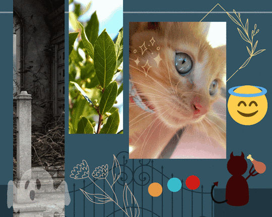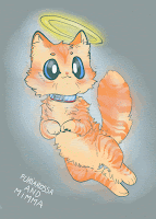 He doesn't meaow, he only makes cute trills and chirps that his owners call "pixie noises".He died from a flu of unknown origin. Despite the veterinarian intervention, he couldn't be saved.After his death, he was buried under a laurel tree (his favorite essence) that was planted on his burial site. That's his main resting place, and even as a ghost he can't (and he doesn't want to) get too far from the laurel.The longer he possesses someone's body, the more that creature starts to look like him. This usually means that one could potentially recognize a cat possessed by Vitaly because they look prettier.When he was alive, he was trained to go on leash and do a variety of tricks. He still can do them, but sadly most wouldn't see him being a good boy and sit on command.