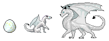 White dragon hatchlings are born, like the majority of dragons, from eggs that are incubated for a variable time period, but that will almost always hatch only at the presence of the human the newborn dragon will bond with. White dragon eggs are robust, with a thick rind that can have a variety of colors from cream to pure white, usually mottled by iridescent veins, and they can remain dormant even for centuries.At birth, a baby white dragon already has functional horns, thorns and wings, and they weigh from 300 grams to 900 grams. The size of the egg and of the baby depend on the age and size of the mother. The females lay only one egg at a time.