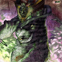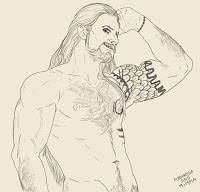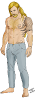 Notes of style: Thomas has a tuft of red hair right on the heart. His appearance varies depending on the powers he's using and the enchantments he's casting. However, the runes on his body are vastly variable in pattern, size, and shape.