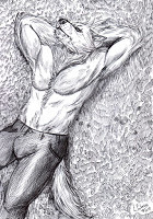 Height/Weight (full moon form): 1.78+ (it heavily depends on how much energy he has on the moment and how much he ate before transforming)Body type: Manly male, not too much muscle (he's not a bodybuilder), but with round and strong musculature, especially fine pecs