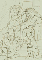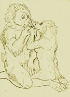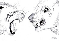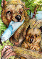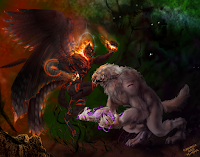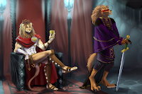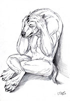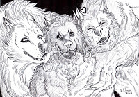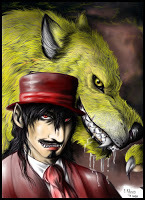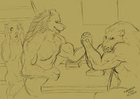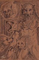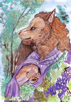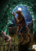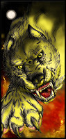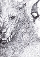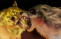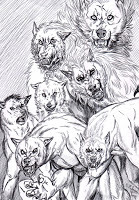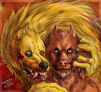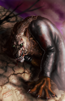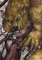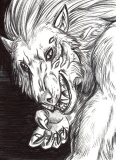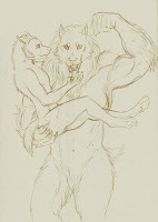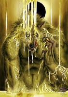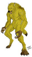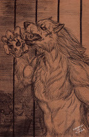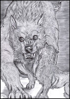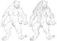 An extra form?Furiadoro is a lycanthrope with complete cycle: this means that she can reach any possible lycan form, even the intermediate ones that there aren't portrayed here (for example a mix of crinos and human, with claws, some fur and a more solid building, but the basic body shape of a woman). Her appearance is fluid enough that even her facial features could slightly change when she's in human form, so her face could eventually appear a bit different every day. But the most interesting thing is that she can reach a stadium, called "great crinos" or "monster lycan", that's so rare that only a few lycanthropes in history have obtained it. She could stay only a few minutes in this very energy consuming state, but she becomes an enormous wolf-tank, with thick skin, that grows up in size eating the flesh of her enemies and totally abandon herself to instinct and aggressivity.