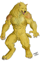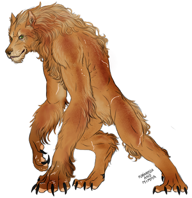 SupergoldenwolfenUsually, the aurolupus lycans (also called by some "goldenwolfens") are 1,60-1,78 m tall when in human form. Furiadoro is 1,92 m tall, with a weight ranging between 100 and 160 kg. This particular subspecies, taller and with lighter pigmented skin, is known as "supergoldenwolfen" and it's extremely rare, enough to be considered a legend. Also, even if she has the phenotype of a pure supergoldenwolfen, she is not actually a pureblood and this results in non-total refractoriness to magic (pure goldenwolfens are totally refractory to magic) and theoretically she could even use very simple basic spells.