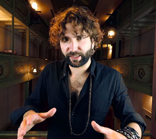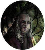 Aveva i capelli mossi e una barba lunghissima, infilata nella cintura della veste da mago, le lentiggini e grandi occhi verdi solenni.