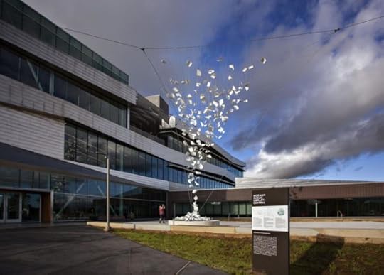 Unbound sculpture in front of the Norman Public Library Central.