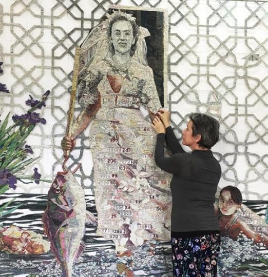 I recently discovered the work of Tamlin Blake (special thanks to one of my dear readers). Blake is a South African mixed media artist whose work explores the making of memories and identity through inherited heirlooms, treasured objects as well as the spaces once revered by lost friends or family. Her recent work consists of tapestries, woven from re-cycled hand-spun newspaper.