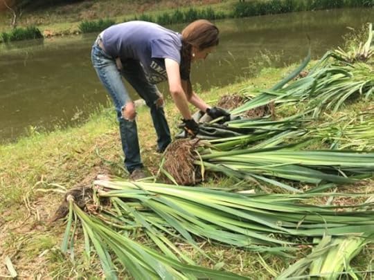 I had the pleasure of presenting with Rachel Singel, associate professor at the University of Louisville, as part of a fellowship program she was involved with in the spring. Each fellow got to partner with a professional in their field. It was fun to come across this article about Singel, who is passionate about finding creative ways to eradicate invasive plant species that threaten local ecosystems. Here she is, working with yellow flag iris, which grows in wetlands, is toxic to livestock and other animals and destroys habitat used by waterfowl and native fish.