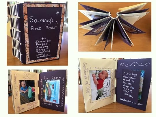 In the Studio:It is such a delight to see how participants respond the projects I introduce in The Paper Year, my membership program. We just wrapped up the July Project: Envelope Photo Albums. Susan Kanowith Klein set out to make an album with wallet-size photos for her grandson Sammy about his first year. (She’s giving the album to his parents for safe-keeping.) She included two unsealed envelopes for Sammy – for when he’s older – to add some of his own photos and notes. What a sweet book and keepsake!