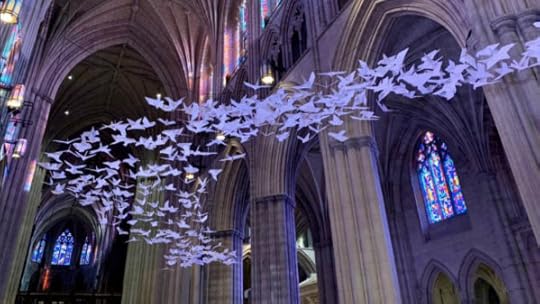 A couple of weeks ago, I posted about an installation of origami angels (the , at Ripon Cathedral in the UK. And then a reader sent me a link to this installation of origami doves by Michael Pendry at The Washington National Cathedral. Click through to watch them in motion. What a poignant message this installation gives us this week: PEACE.
