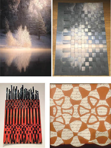 In the Studio:My online class Weave Through Winter is so inspiring! I learn as much as participants do. Here are just three of the hundreds of weavings that were created this week: Rebecca Winter wove two copies of the same photo together; Peg Riley inserted old film strips into a piece of wall paper; and CJ Mittendorf cut curved strips and windows. Follow the hashtag #weavethroughwinter to see what we’re up to. You can also sign the waiting list for next year’s class.