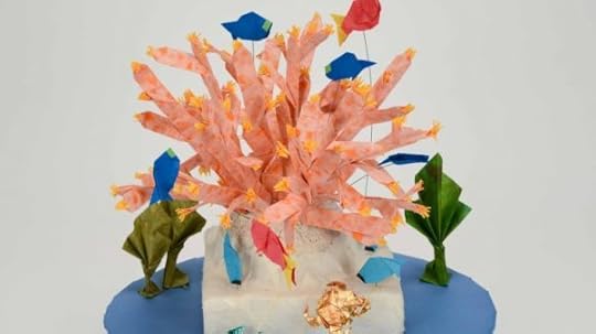 AMNH’s holiday tree is decorated with thousands of origami worls, including this one depicting coral and a school of fish. Photo Credit: Craig Chesek