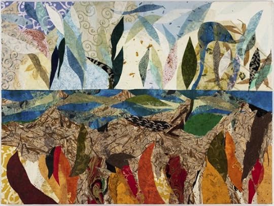 I received a note from a reader, who introduced me to her lovely collage work. Maureen Maki creates paintings by collaging a variety of handmade papers from the extensive collection she’s complied over the years. I love how she collages around the edges of her canvases – click through to see this.