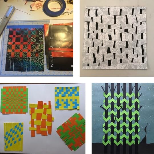 My online class Weave Through Winter kicked off this week. We’re creating a weaving a day, and week one involves weaving strips of paper. Here a few examples: