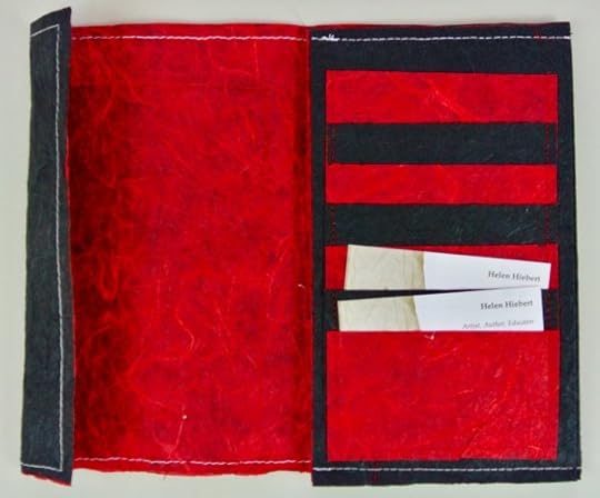 I folded a strip of the reversible unryu multiple times and stitched it to create this book object that unwraps to reveal pockets, envelopes, a pamphlet of pages for writing and a velcro closure.